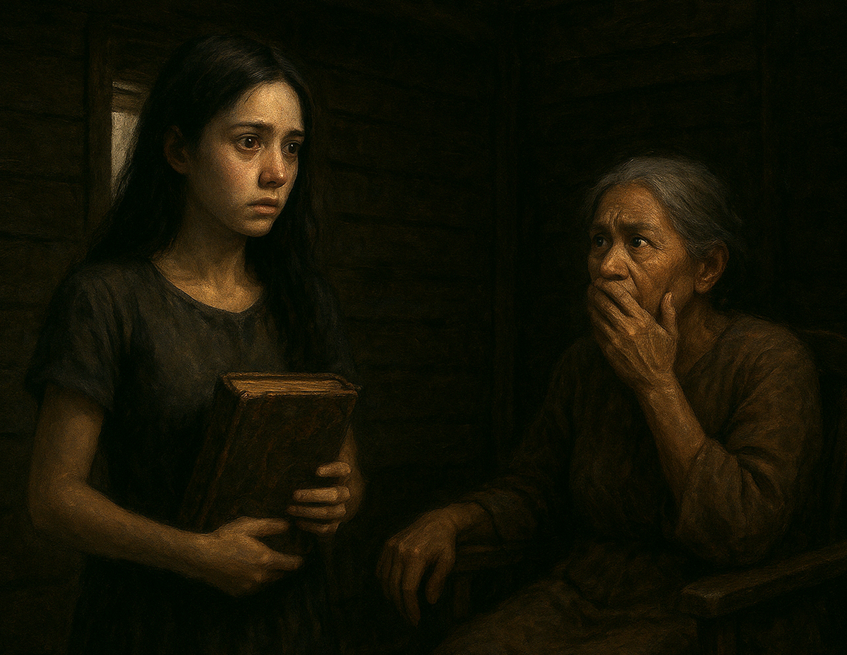 Tidak tahan dengan mimpi yang berulang dan perasaan seperti diekori seseorang, Alina kemudian membawa buku tersebut ke rumah neneknya dan bertanyakan tentangnya.