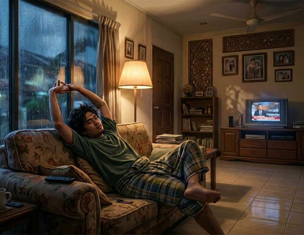 Solihin menggeliat malas di sofa ruang tamu. Beberapa kali dia melurus serta merenggang jari jemari. Entah kenapa tubuhnya terasa cukup lemah dan lesu. Nak kata dia ada buat kerja berat tidak pula, tapi memang sehari dua ini badannya cepat berasa letih.