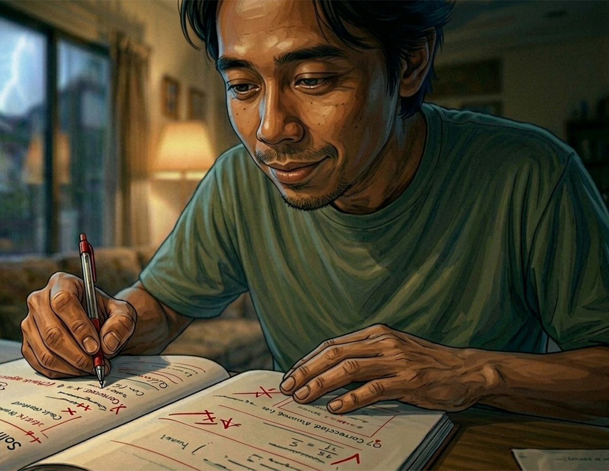 Dia selak helaian buku tulis di meja berdekatan. Lega! Nasib baiklah dia sempat siapkan kerja sekolah tadi jika tidak terpaksalah dia berjaga sampai larut malam.