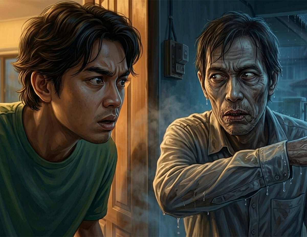 Sekali lagi kedengaran pintu diketuk dengan kuat. Kali ini bunyinya jelas kedengaran kerana hujan di luar sudah beransur reda.