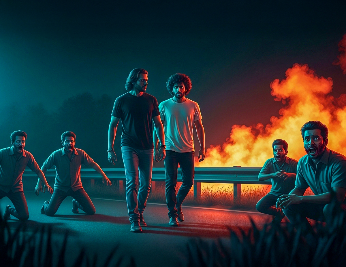 Sebaik sampai, dilihatnya beberapa remaja belasan tahun sedang berlari dengan termengah-mengah. Lantas dia dan Kamal menenangkan mereka. Nampak wajah mereka yang terkejut dan pucat.