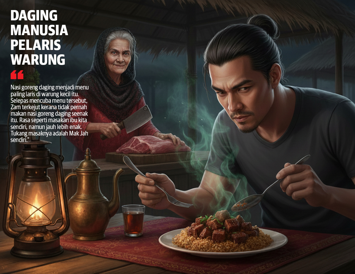 Biarpun masih terkenang keenakan masakan Mak Jah, namun Zam berasa seram sejuk apabila teringat kejadian yang menimpa Din dan kebarangkalian termakan daging manusia.