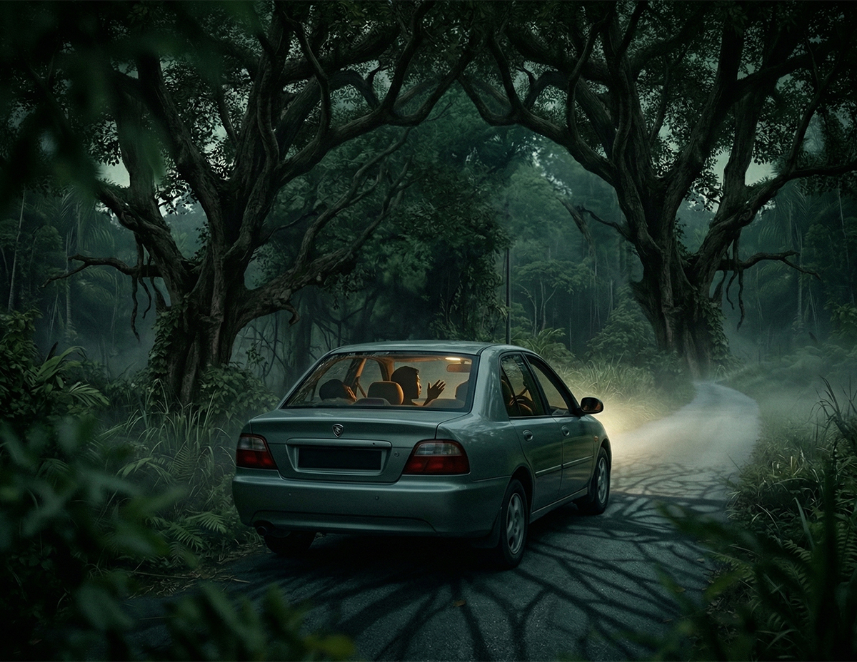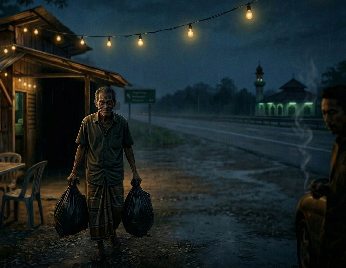 “Sebenarnya bukan tuan seorang saja yang terkena, ramai juga pemandu lain yang pernah singgah di situ, terutamanya orang luar yang lalu kat kawasan ini pada waktu malam,” sambung lelaki tua tersebut.
