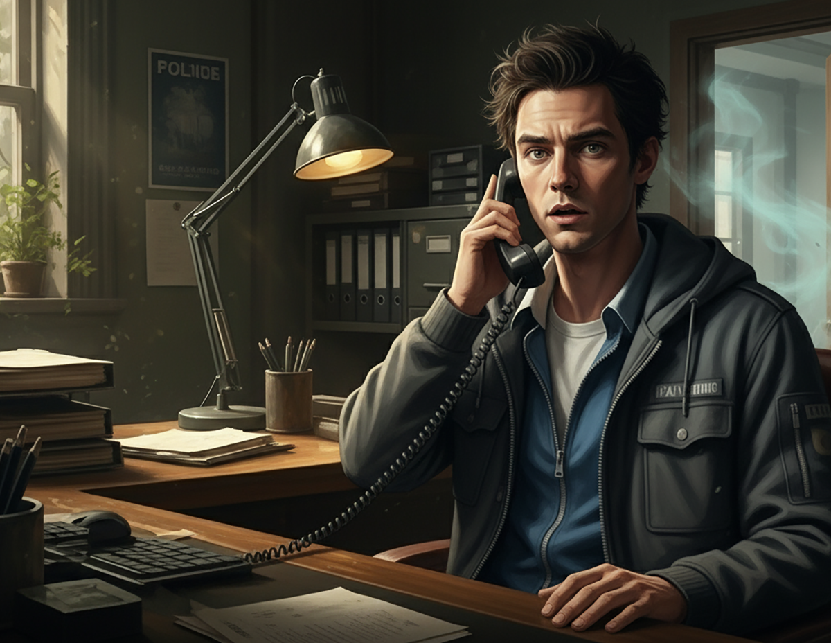 Seram dan takut dengan apa berlaku, Ridz meletakkan panggilan dan terus keluar dari balai tersebut untuk ke pagar utama.