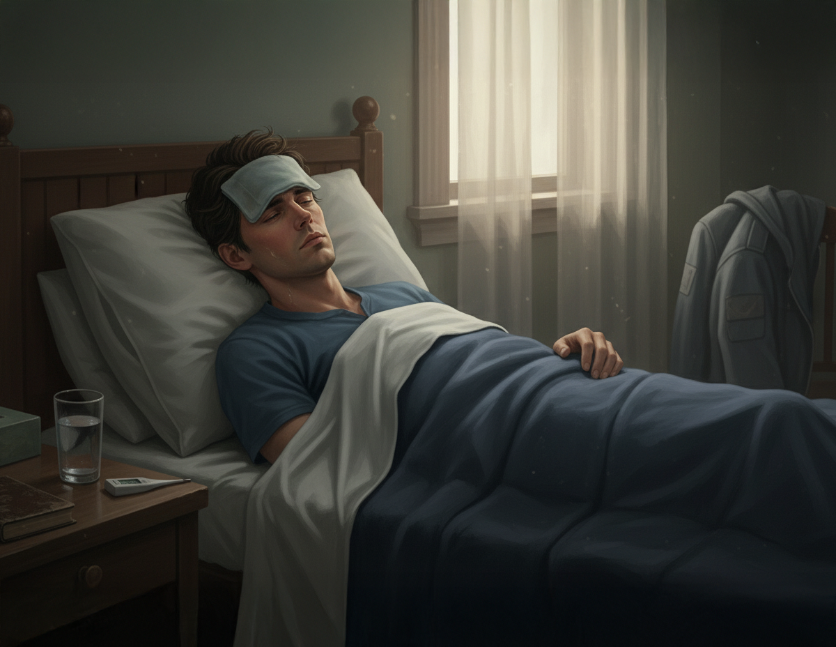 Tiga hari Ridz jatuh demam dan dikatakan seorang anggota lain yang baharu habis meronda menjumpainya jatuh pengsan dengan muka pucat.