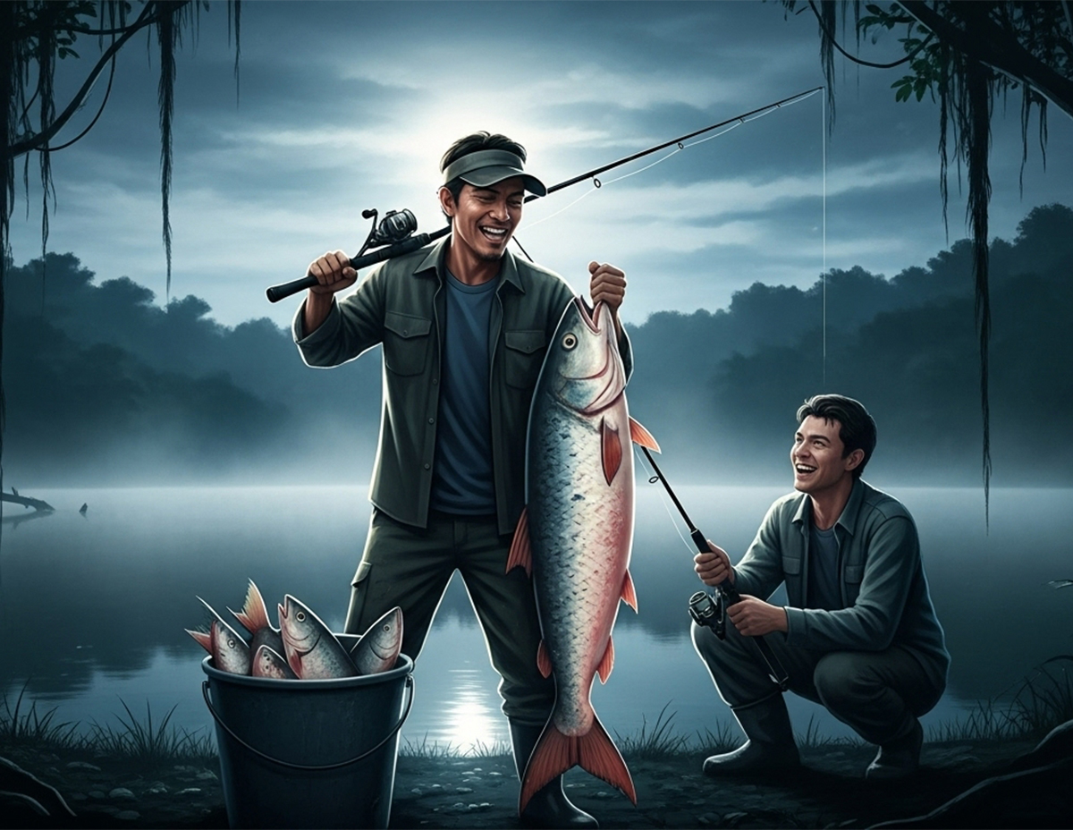 Bagaimanapun kata Alif, selepas sejam memancing, mereka mula berasa hairan kerana tiada lagi tanda-tanda umpan dijamah ikan.