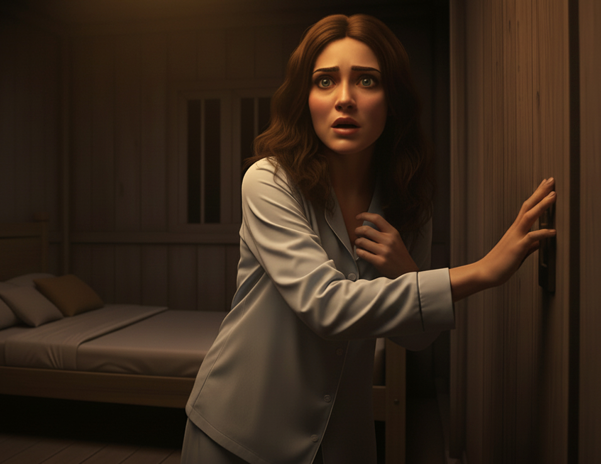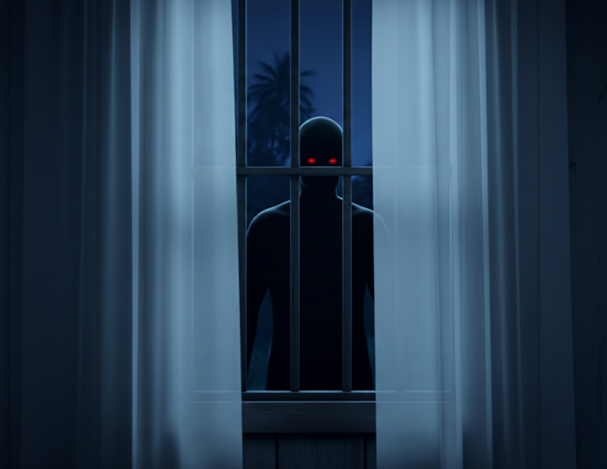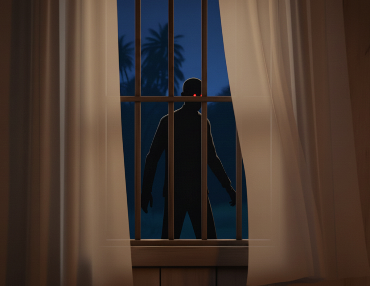 Ketika mahu mematikan lampu bilik, matanya tiba-tiba melihat kelibat seorang lelaki botak yang berjalan mundar-mandir betul-betul di tepi tingkap bilik tidurnya.
