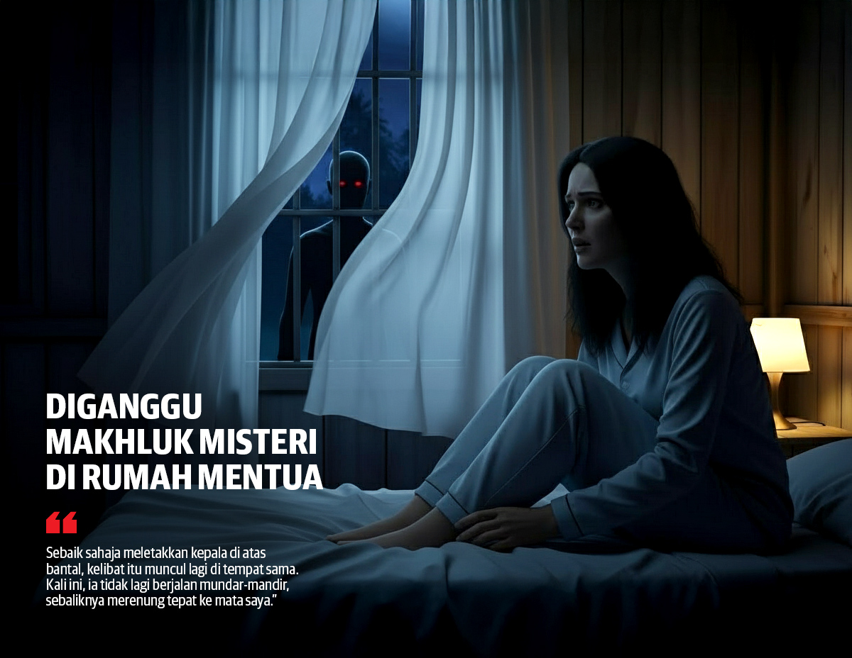 “Namun, sebaik sahaja meletakkan kepala di atas bantal, saya melihat kelibat itu lagi di tempat sama.