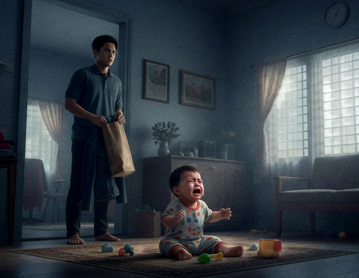 Kemudian, selepas dia meletakkan beg ke dalam bilik, anak buahnya itu berhenti menangis.