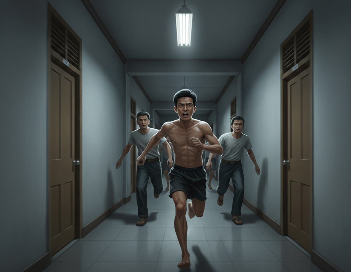 “Bunyi tapak kaki semakin kuat, seolah-olah berlaku kejadian kejar mengejar di luar dorm tempat kami berbincang,” ujarnya.