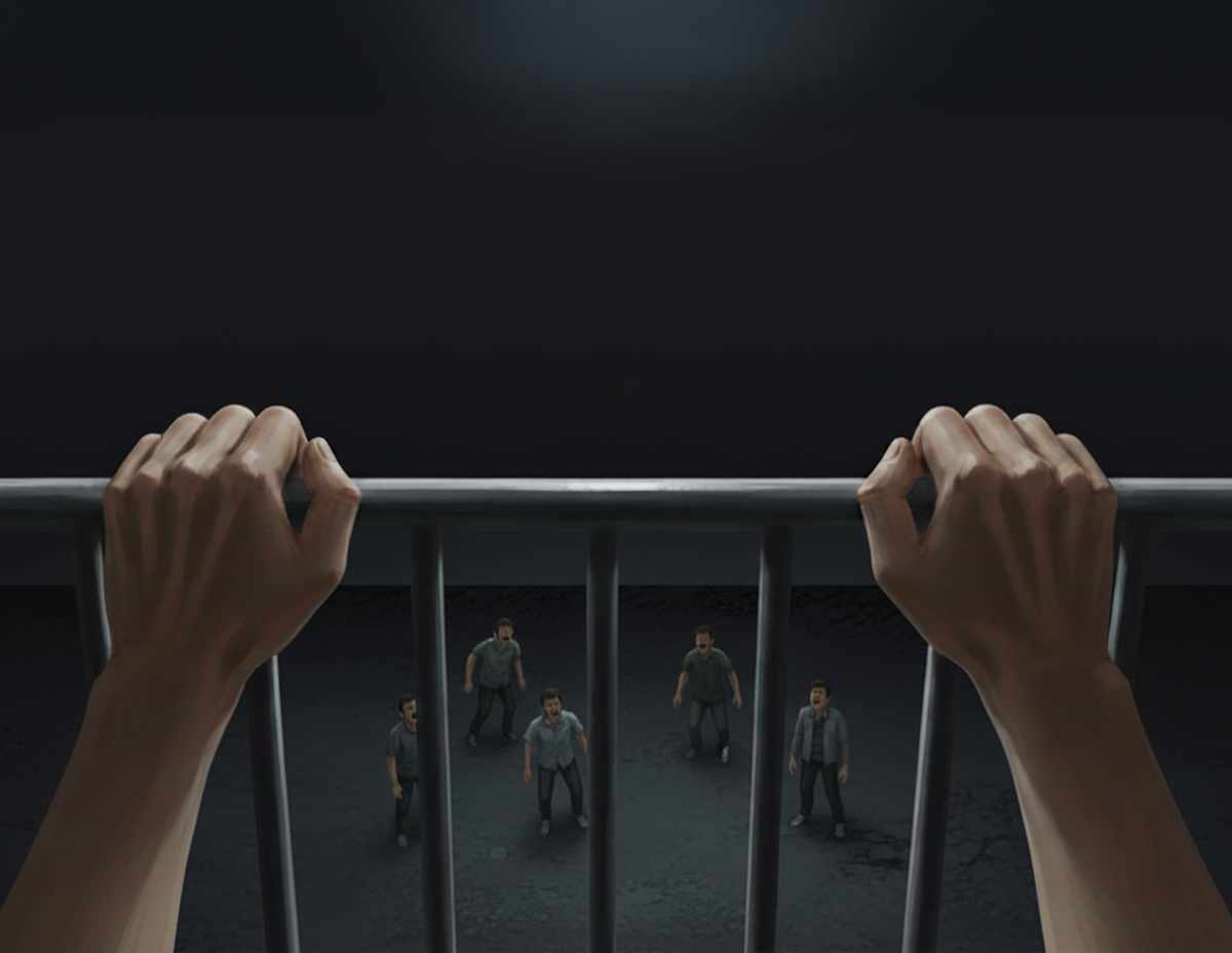 Tiba-tiba terdengar jeritan di tingkat tiga yang berbunyi….. jangan terjun Eddie…. jangan…. nanti pecah kepala engkau.