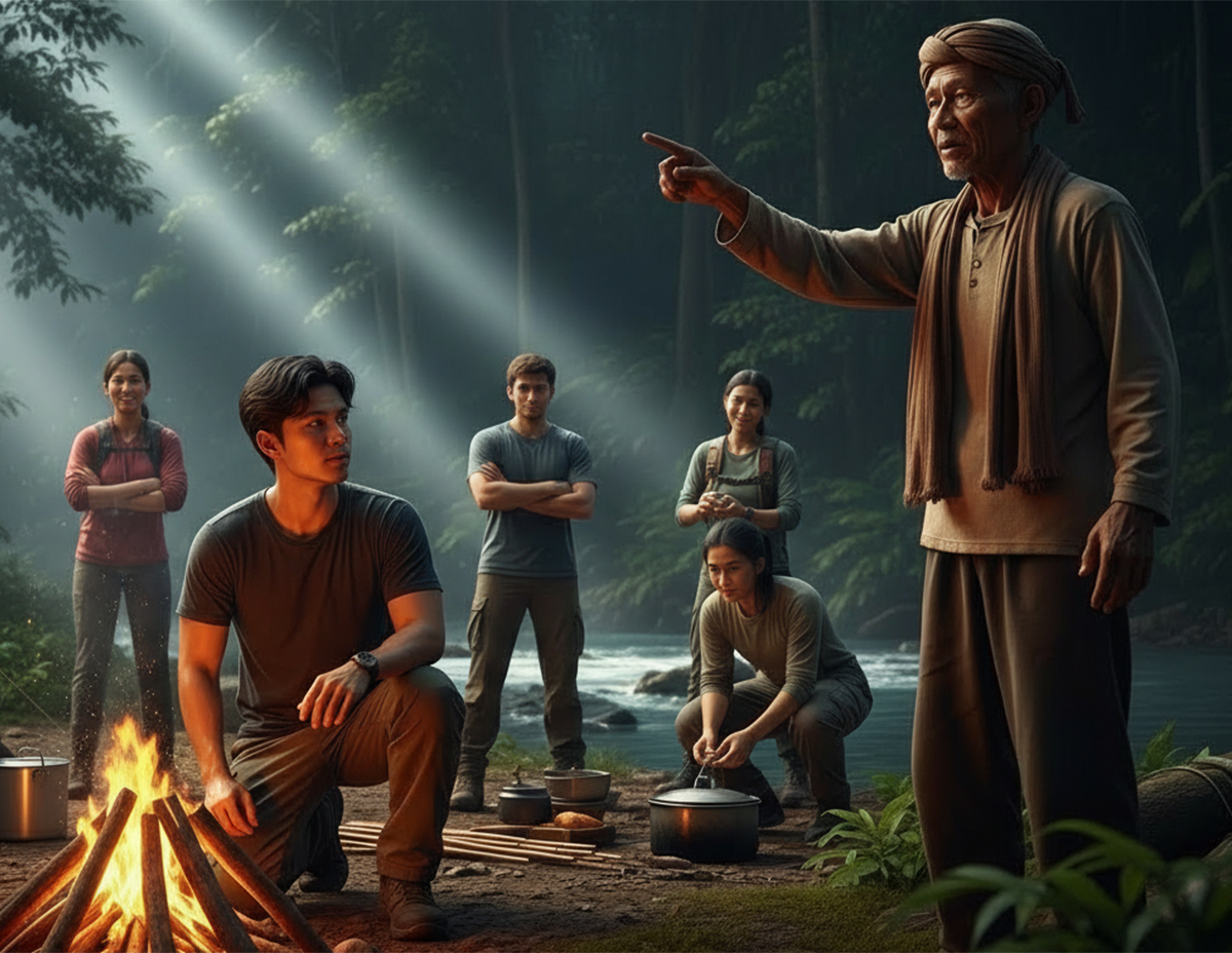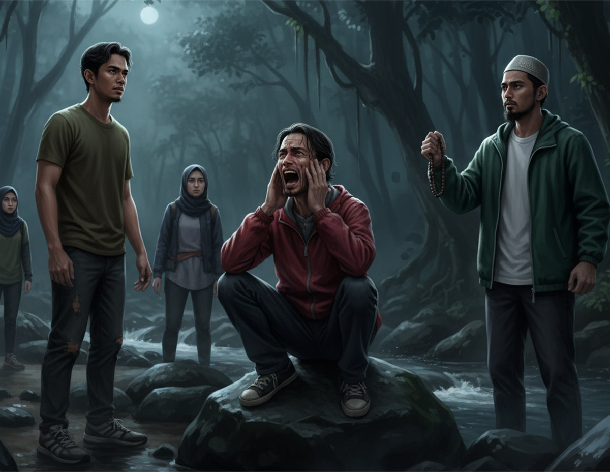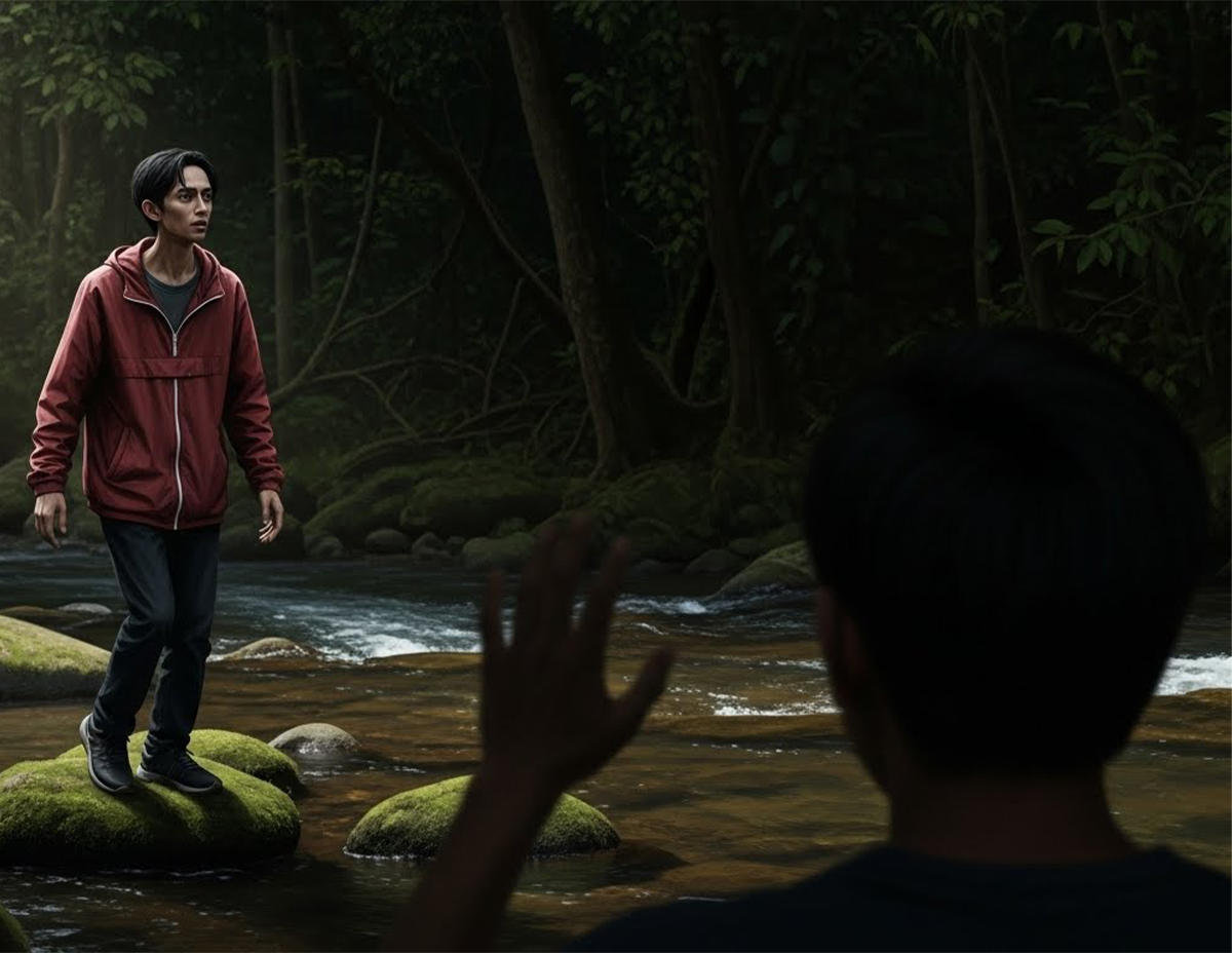 “Kami pun cepat-cepat tengok kawasan sekeliling dan melihat Azim duduk kaku di atas batu berhampiran sungai memandang ke dalam hutan.