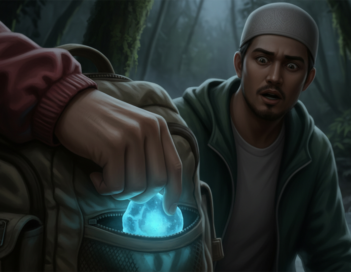 “Setelah sedar, ustaz bertanyakan kepada Azim sama ada dia mengambil sebarang objek atau apa saja. Azim pun tunjuk sebiji batu bersinar berwarna kebiruan yang diambil dari dalam beg untuk diberikan pada ustaz,” katanya.