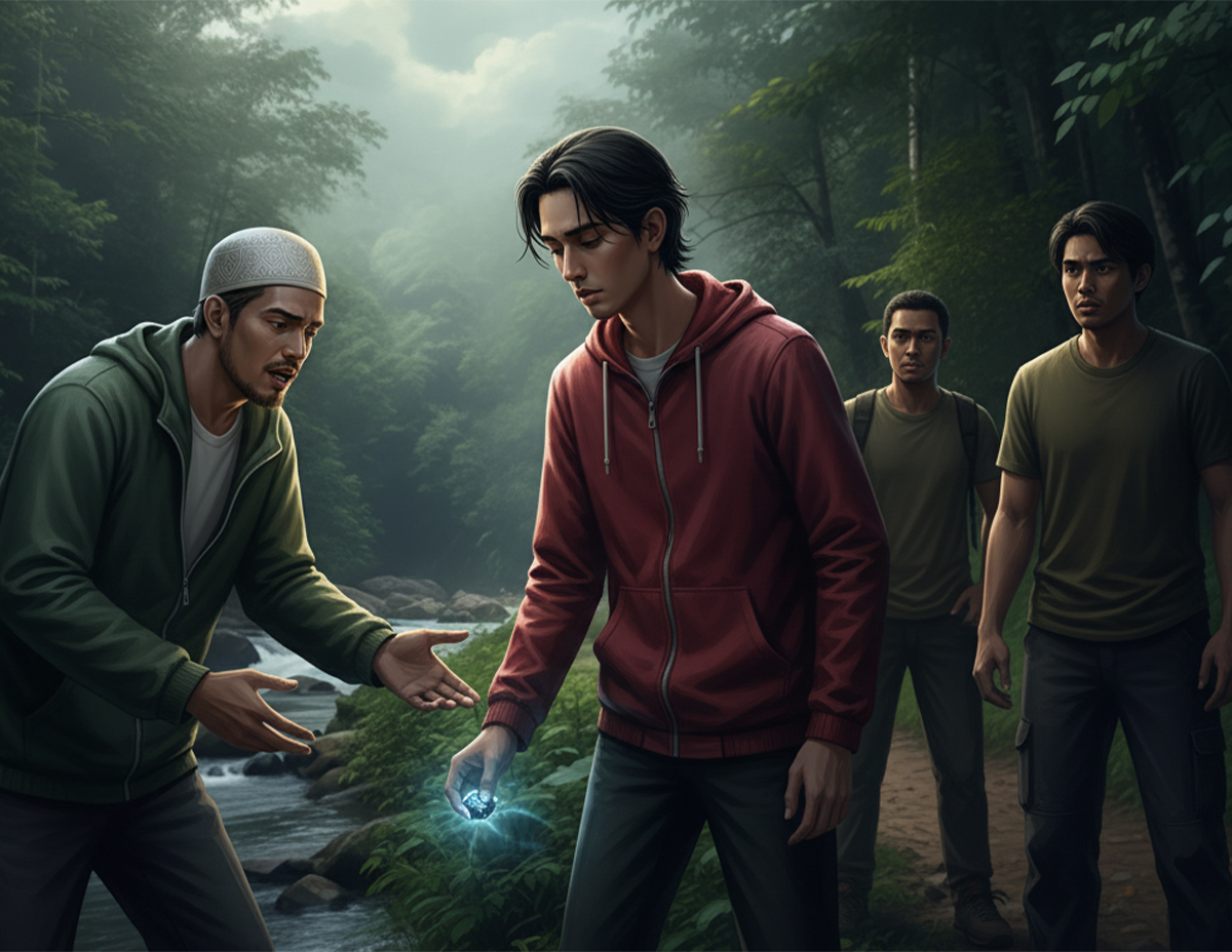 Ustaz kemudian menasihati Azim untuk mengembalikan semula batu itu pada kedudukan asal dan meminta Zul dan rakan-rakan untuk segera pulang.