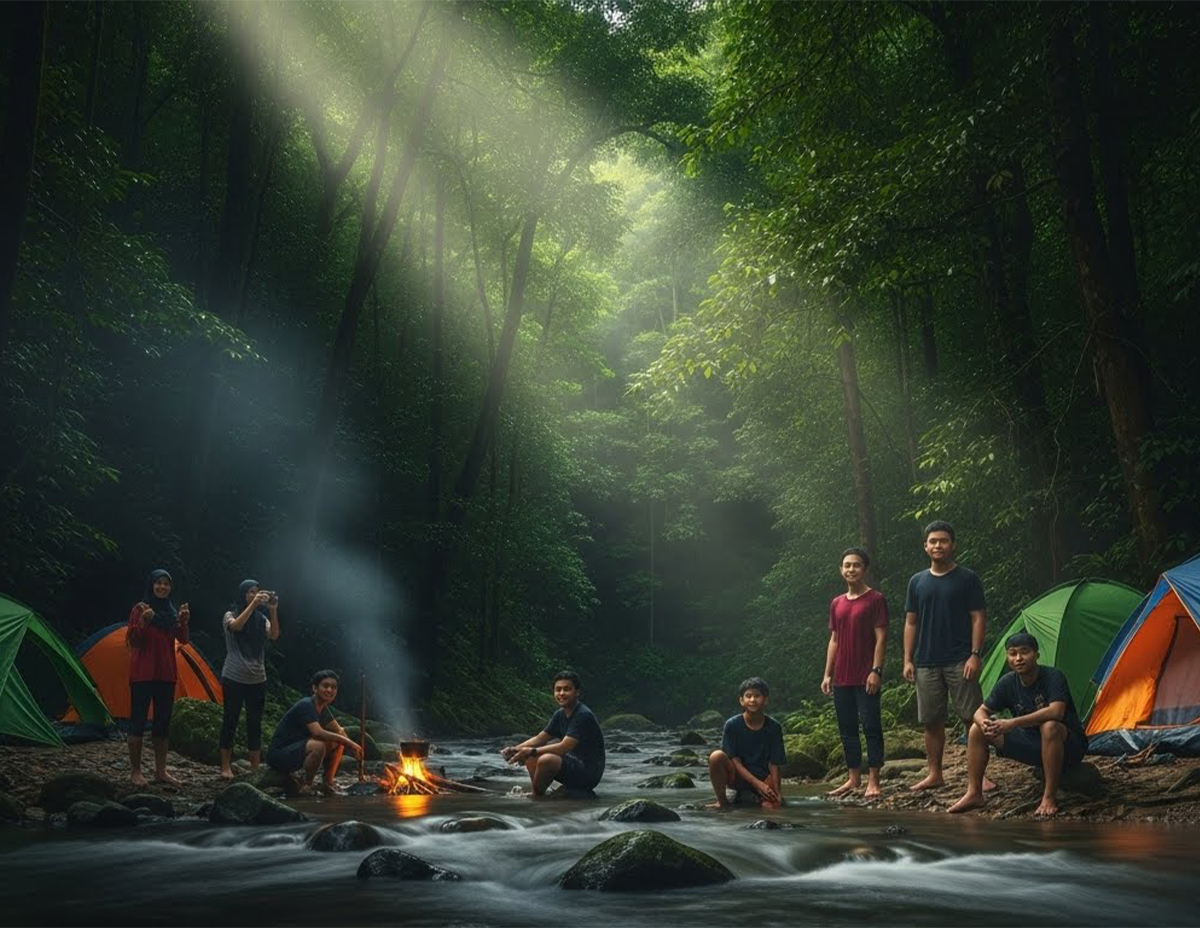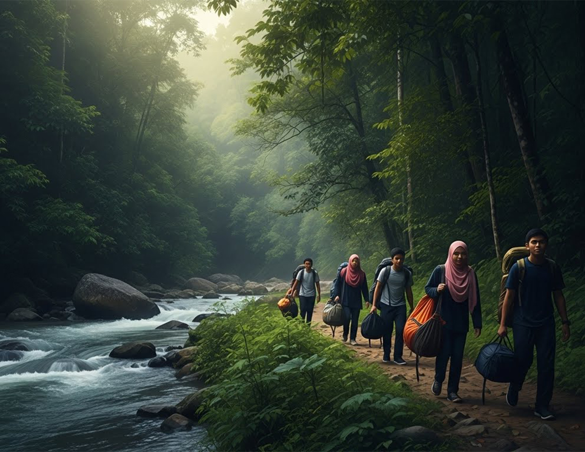 “Kami sampai di lokasi hampir menjelang tengah hari. Sebelum itu kami membersihkan tapak khemah dengan buang daun kering dan ranting dan pilih lokasi berhampiran dengan sungai.