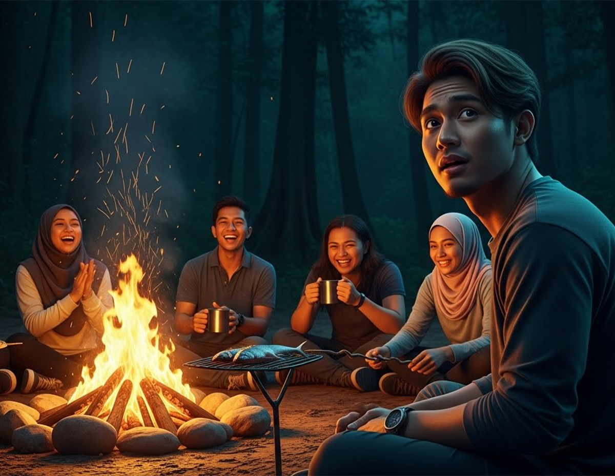 Lepas makan malam kami berkumpul mengelilingi unggun api sambil bercerita dan menyanyi. Ketika itu baru sedar Azim tiada bersama kami.