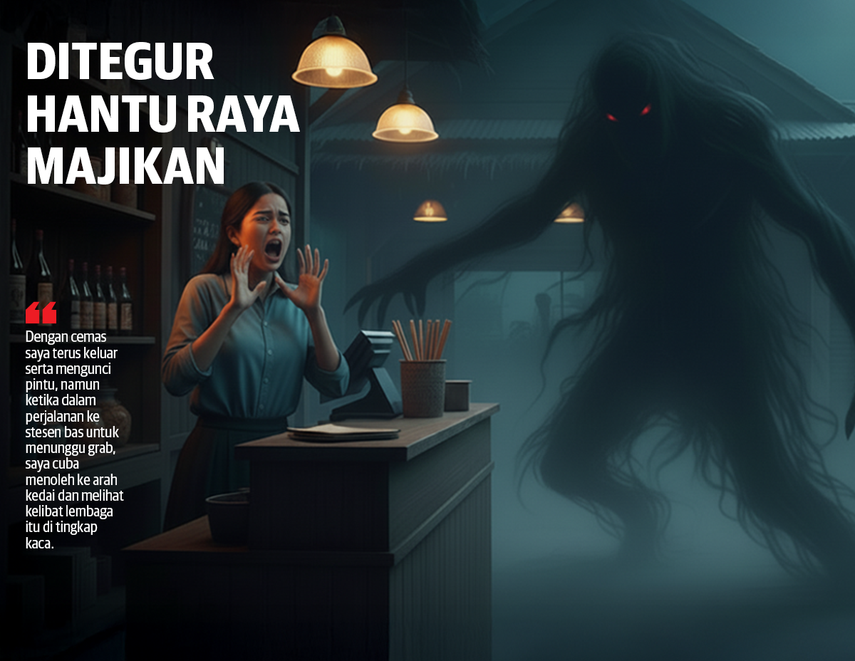 Dengan cemas saya terus keluar serta mengunci pintu, namun ketika dalam perjalanan ke stesen bas untuk menunggu grab, saya cuba menoleh ke arah kedai dan melihat kelibat lembaga itu di tingkap kaca,” kongsinya.