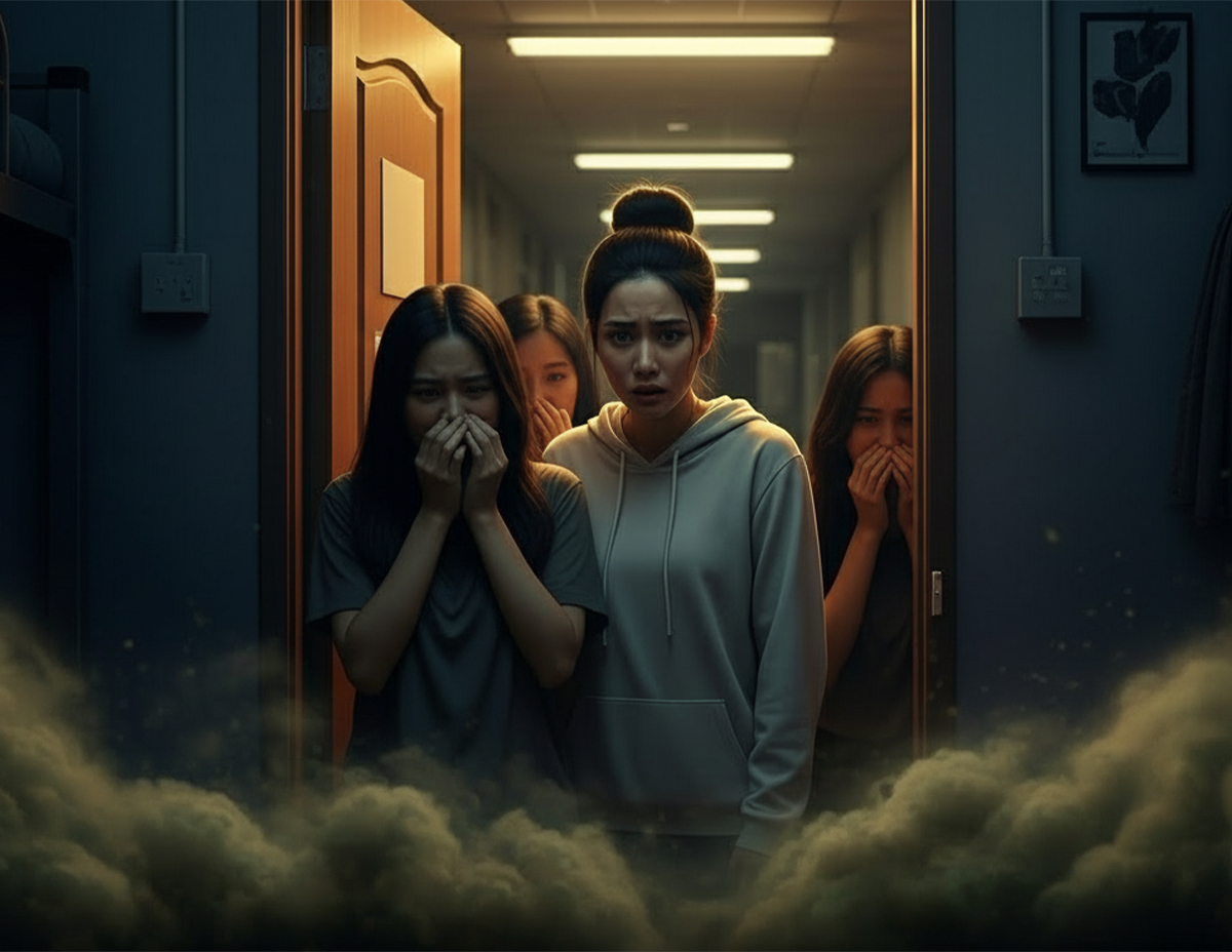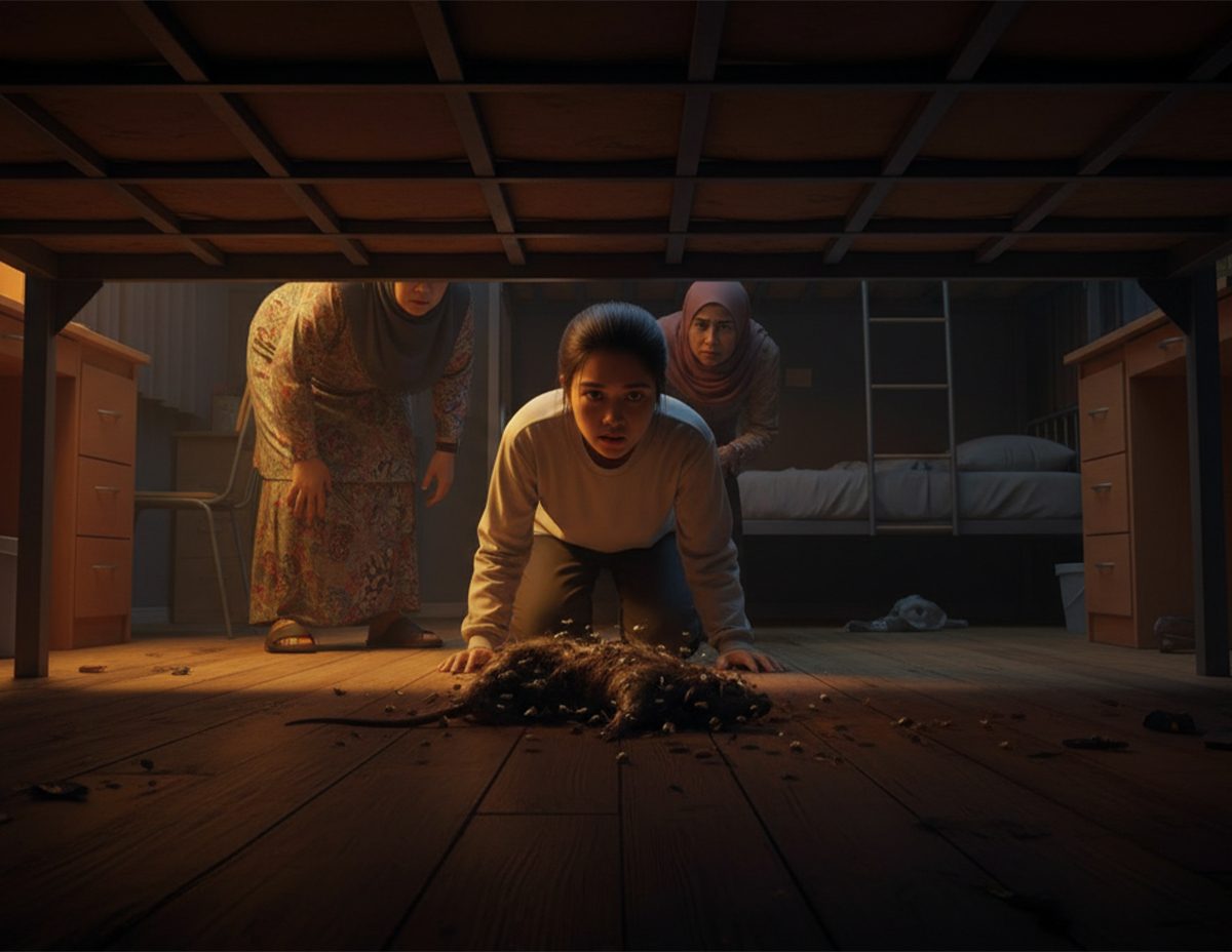 Keesokan pula, Saleha dan Noor membuat aduan kepada warden asrama, tetapi anehnya bau busuk itu sudah tiada. Apabila warden memeriksa keadaan bilik, alahkah terkejutkan apabila mereka menjumpai bangkai tikus yang sudah mereput.