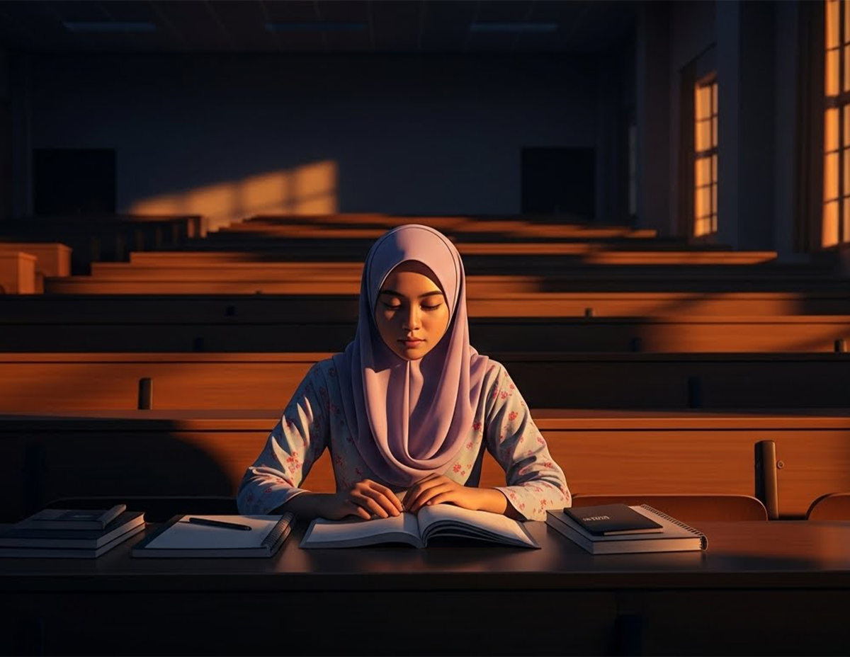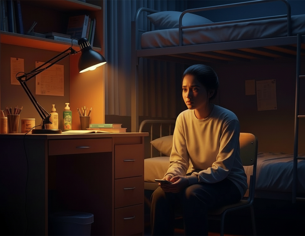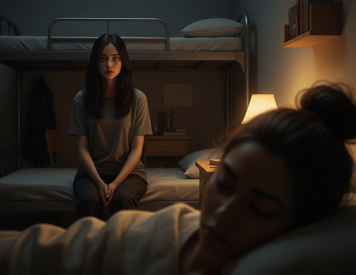 Saya mula rasa gelisah kerana sudah hampir pukul 10 malam, tetapi Noor masih belum ada di bilik. Waktu saya ingin keluar untuk bertanyakan kepada rakan-rakannya, tiba-tiba Noor muncul di pintu. Saya pun bertanyakan mengapa balik lambat, tetapi Noor tiada menjawab. Sebalik dia diam membisu tanpa memberikan sebarang reaksi dan terus duduk di bangku meja belajar.