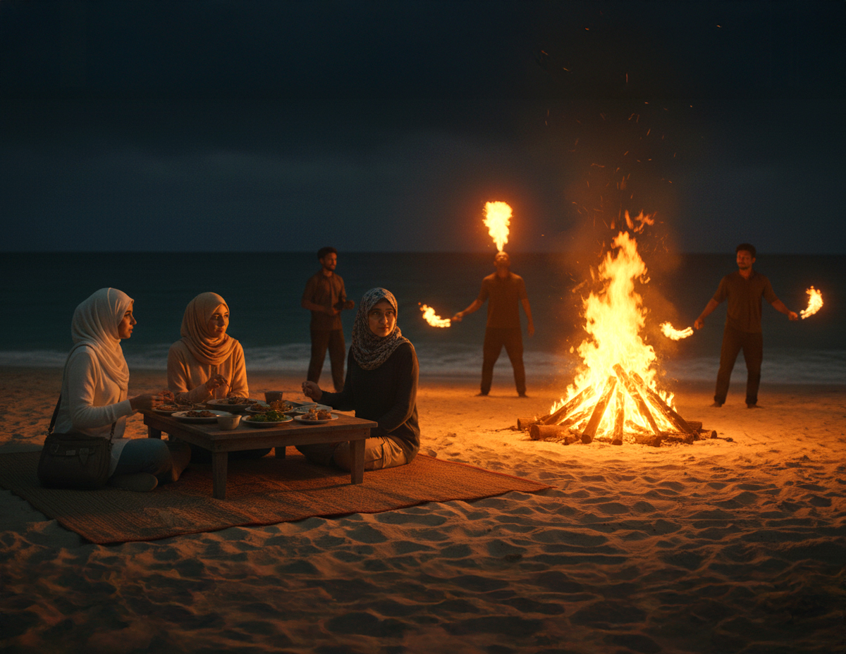 Pada malam itu, dia dan rakan-rakan keluar berjalan di Kawasan pantai untuk menikmati makan malam dan melihat pertunjukan api.