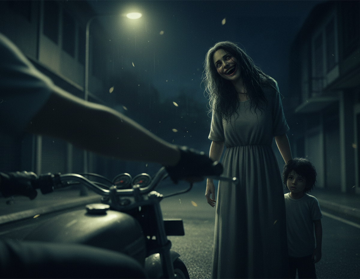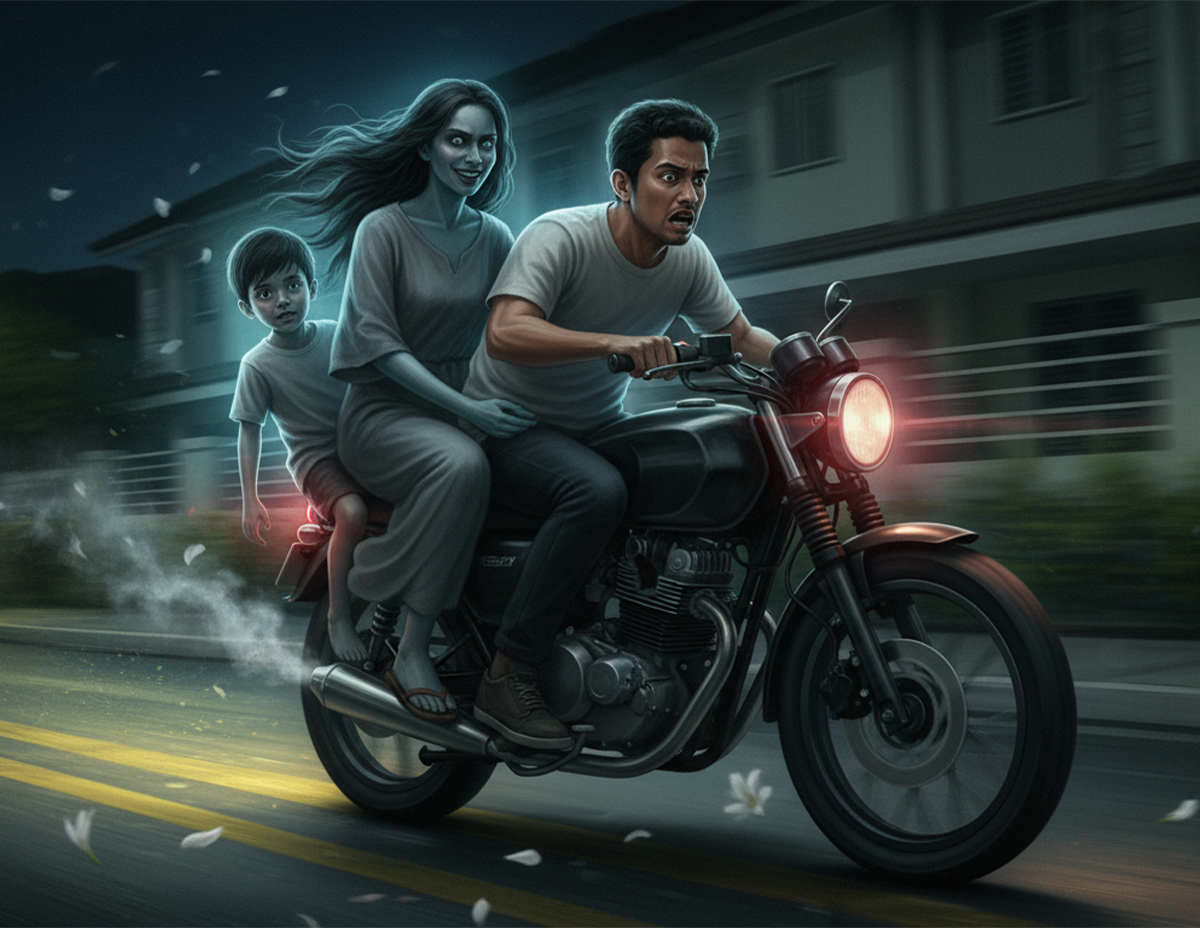Malangnya dia terasa motosikalnya menjadi berat seolah-olah ibu dan anak itu memboncengnya.