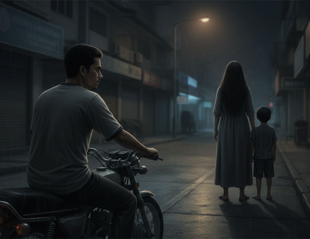 Enggan melihat cermin pandang belakang motosikalnya, Ismail teruskan sahaja perjalanan sehingga ke rumah.