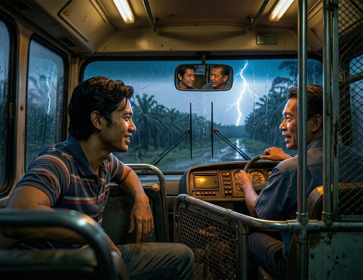 “Iyalah, lama tak hujan ni, sekali turun memang lebat,” jawab pemandu tersebut sambil jari jemarinya menggenggam erat stereng yang dipegangnya.