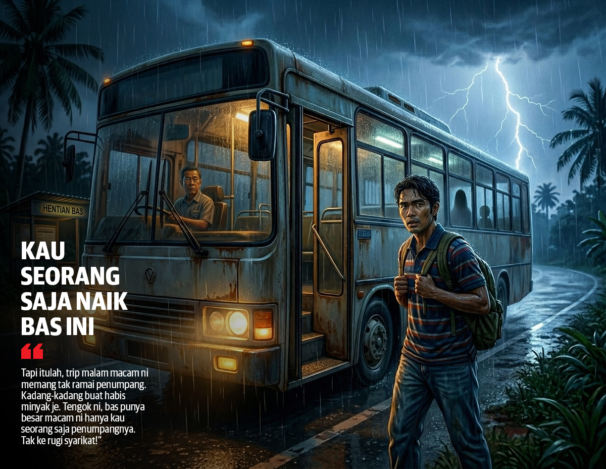 “Haa, tengok! Mana ada sesiapa, hanya kau seorang penumpang aku malam ini,” kata pemandu tersebut dengan yakin.