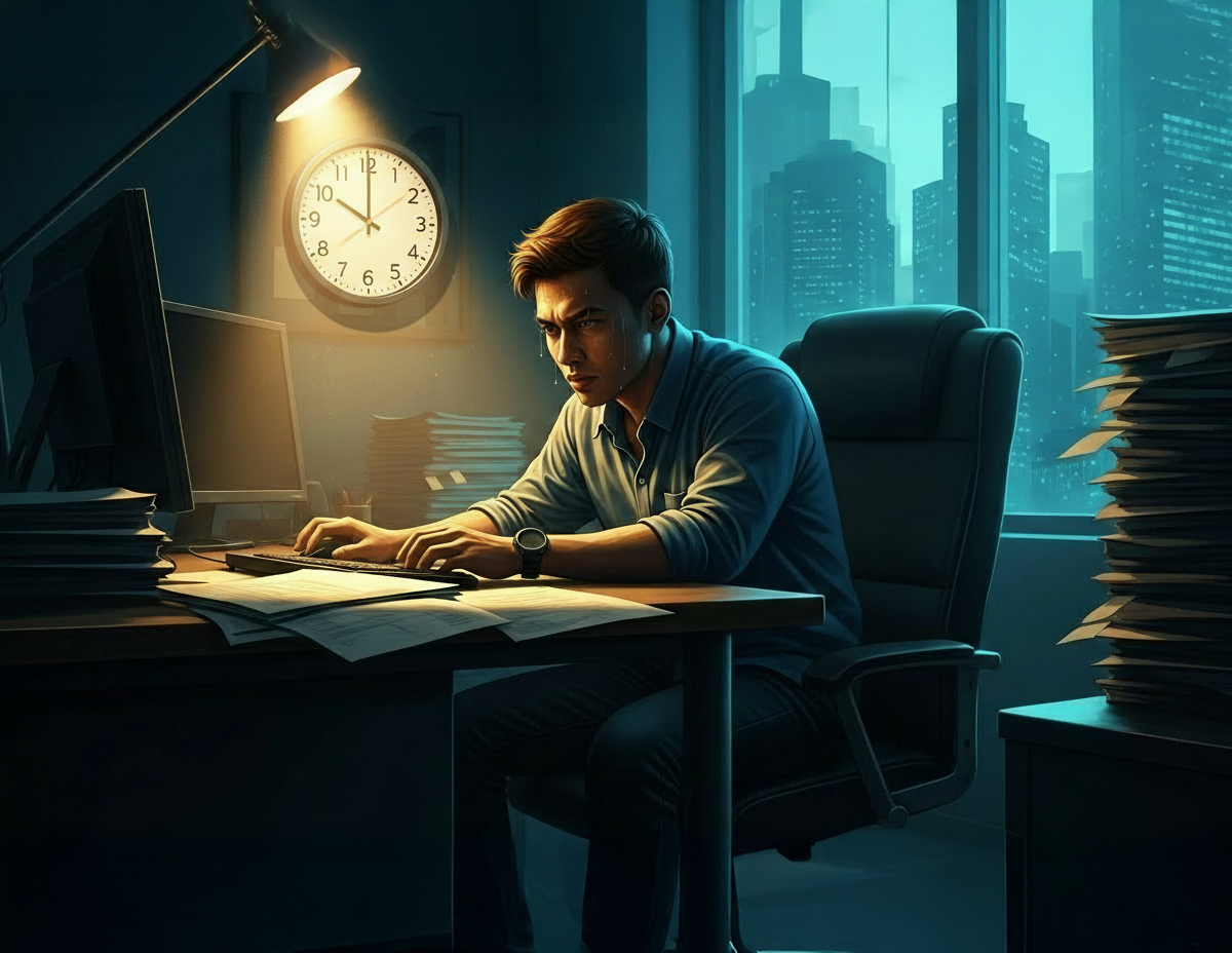 Ini menyebabkan Suhaimi perlu bekerja lebih masa untuk menyiapkan tugasan yang sudah hampir mencapai tarikh dateline.