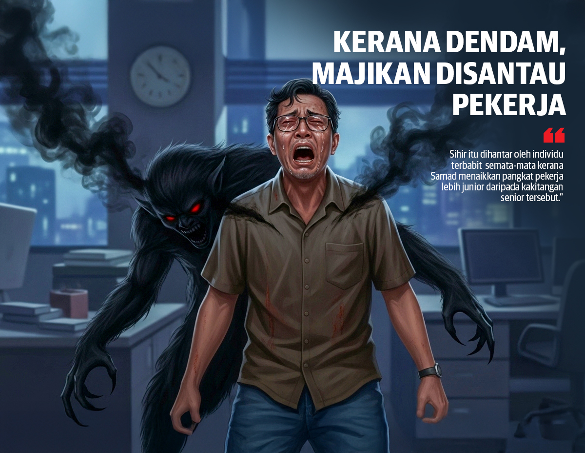 Sihir itu dihantar oleh individu terbabit semata-mata kerana Samad menaikkan pangkat pekerja lebih junior daripada kakitangan senior tersebut.