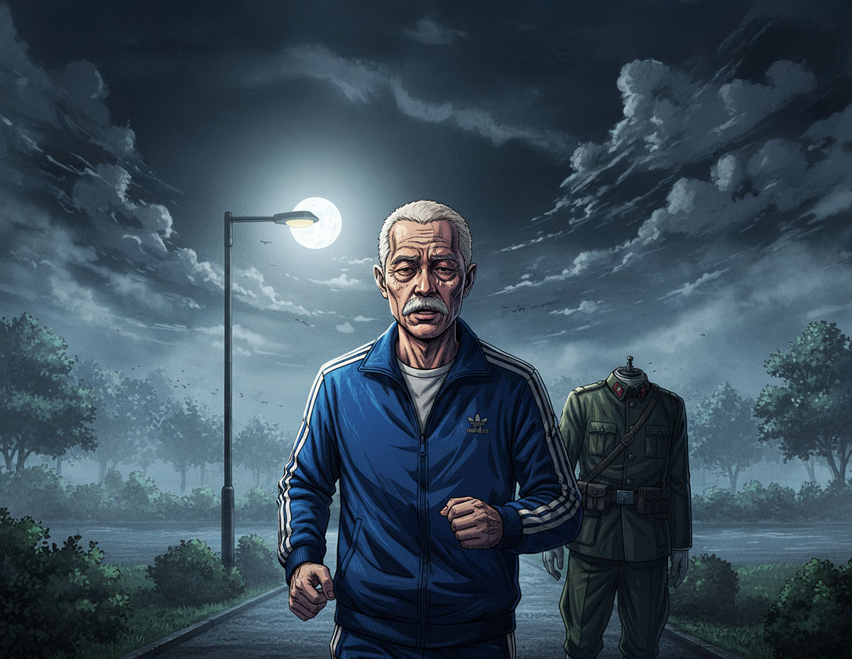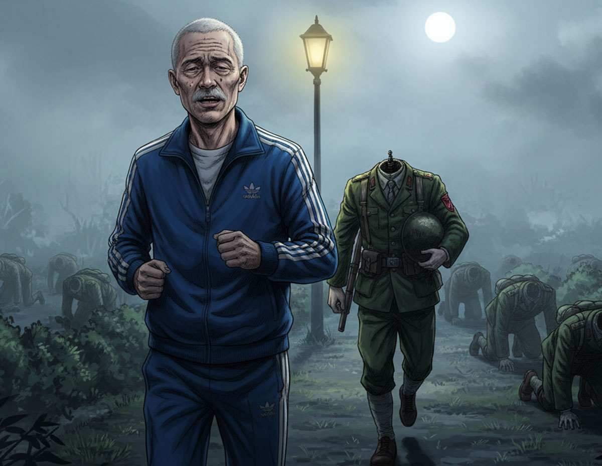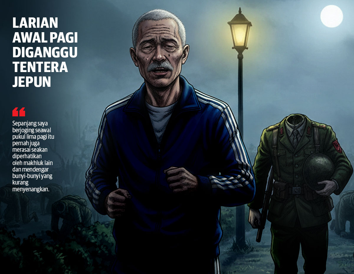 Tambahnya, dalam samar cahaya lampu itu dia perasan pakaian orang yang berlari di hadapannya itu seperti menyarung pakaian tentera Jepun lama.