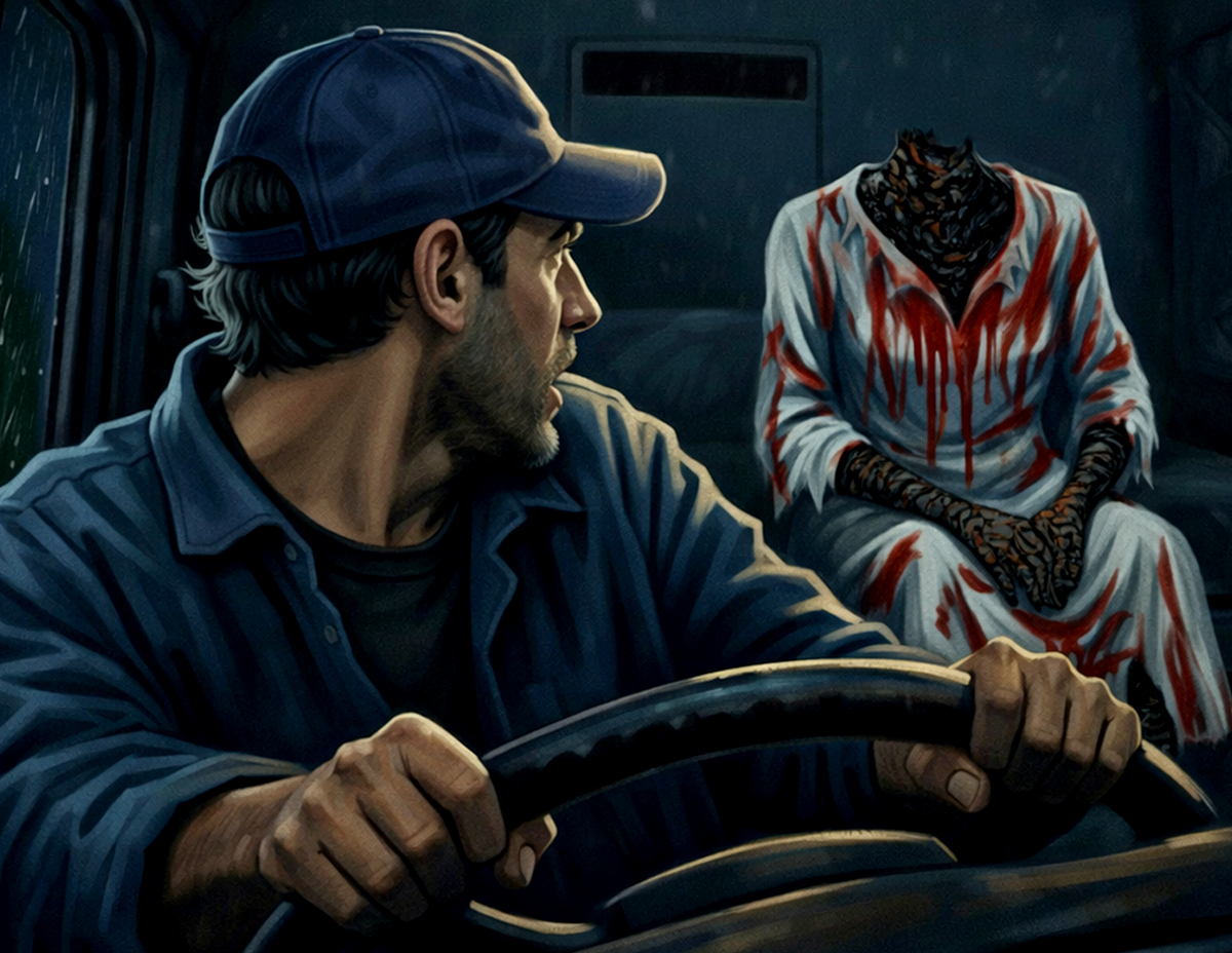 “Selepas kejadian itu, saya demam selama satu minggu kerana terbayang-bayang lembaga menyeramkan yang tumpang bertenggek di ruang rehat belakang lori saya,” katanya.