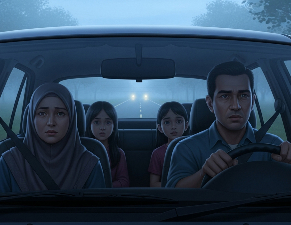 Saya lihat suami khusyuk memandu, maklumlah ketika subuh begini terpaksa lebih berhati-hati dan peka kerana adakalanya banyak haiwan liar melintas jalan.