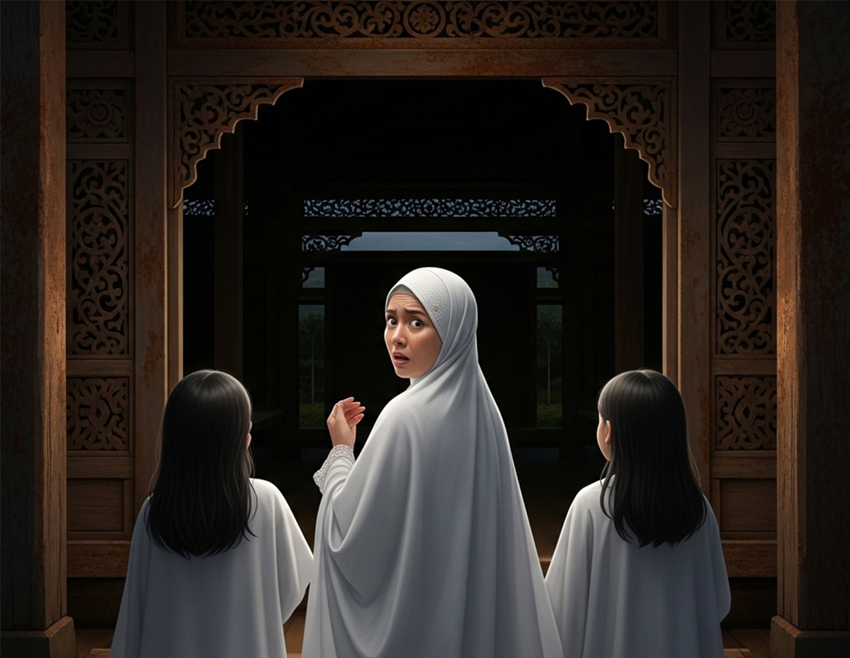 Saya bersama anak mengerjakan solat sunat di ruang belakang sebelah pintu masuk surau. Sebelum iqamah, suami memberi isyarat supaya kami pergi ke ruang solat wanita. Sebaik masuk saya lihat sudah ada seorang jemaah wanita yang sedang menyarung telekung. Saya tidak perasan pun bila dia sampai, namun saya beranggapan mungkin dia sudah tiba awal bersama suaminya tadi.