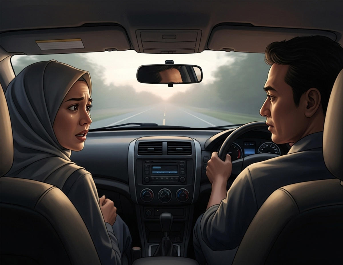 Selepas menghantar Soleh kembali ke asramanya kami bertolak pulang ke Batu Pahat. Dalam perjalanan saya menyingkap semula kisah ketika menunaikan solat subuh tadi kepada suami.
