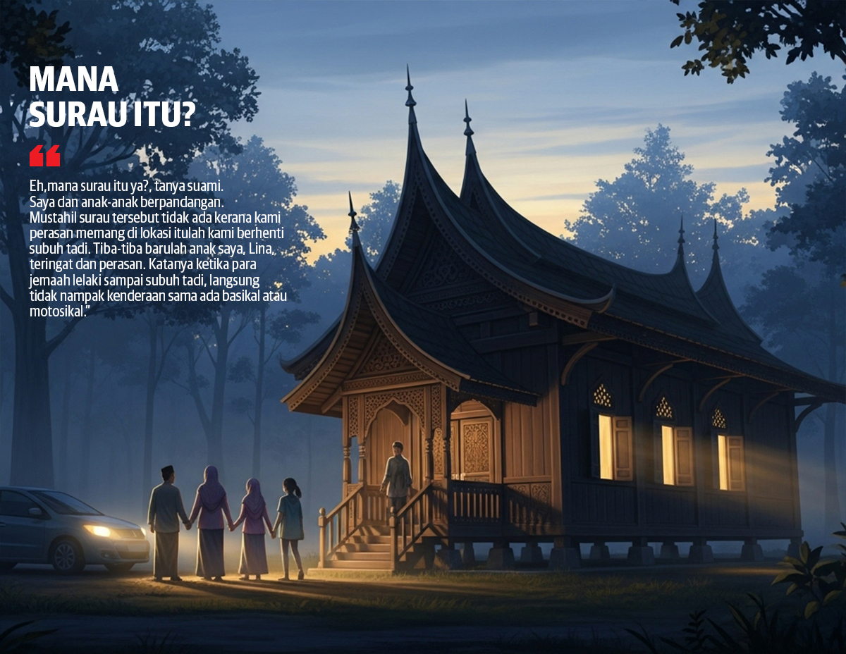 Tiba-tiba barulah anak saya, Lina, teringat dan perasan. Katanya ketika para jemaah lelaki sampai subuh tadi, langsung tidak nampak kenderaan sama ada basikal atau motosikal.