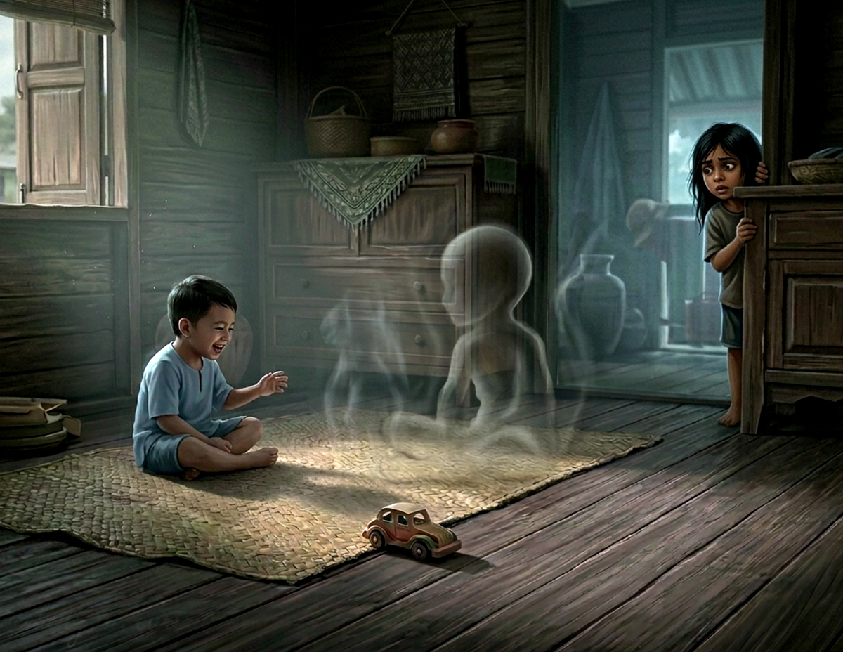 Awalnya, keluarga menyangka bahawa dia hanya membayangkan kawan imaginasi tetapi selepas mendapatkan khidmat orang arif, rupanya dia berkawan dengan anak bunian kerana hijabnya terbuka.