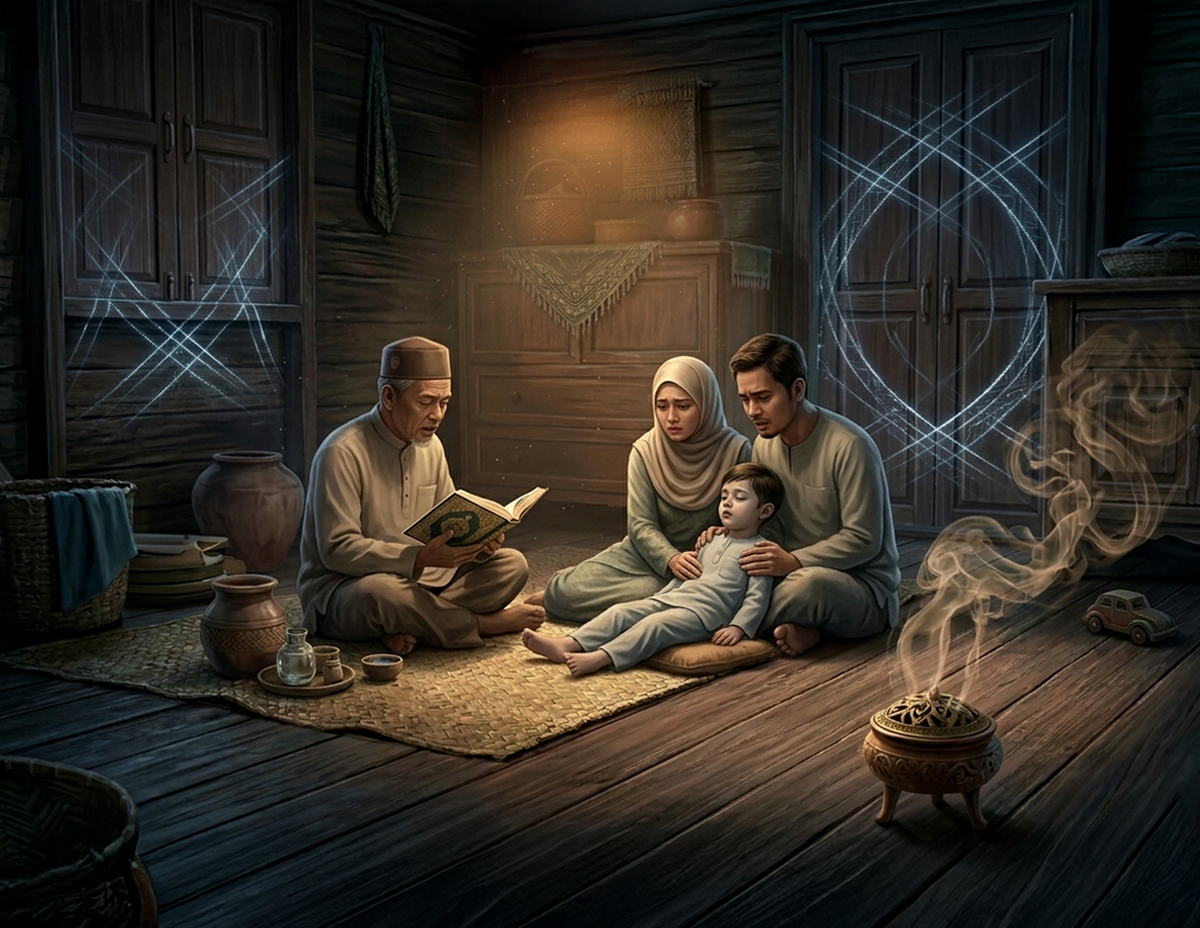 Tidak mahu adiknya hanyut berkawan dengan bunian kerana khuatir dibawa ke kampung mereka, keluarga Amira kemudian melakukan rawatan dengan menutup hijab matanya serta memagar rumah agar anak bunian tidak boleh masuk tanpa izin.