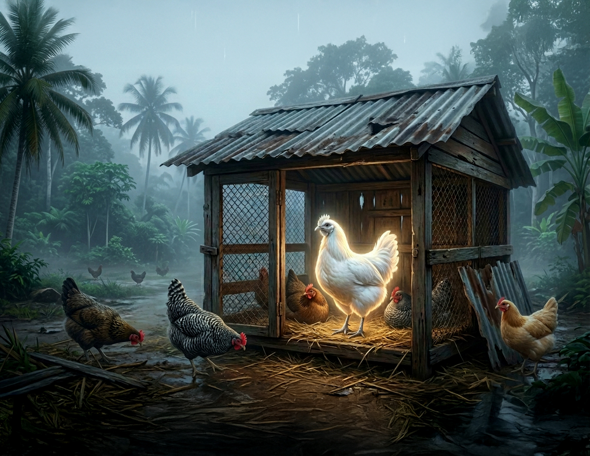 Pernah juga berlaku, dibelakang rumah tempat keluarga Amira membela ternakan ayam kampung dalam reban kecil, wujud seekor ayam putih tanpa sedikit cela.