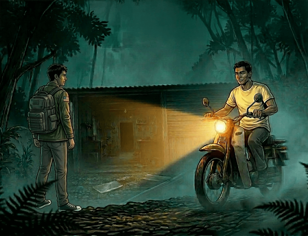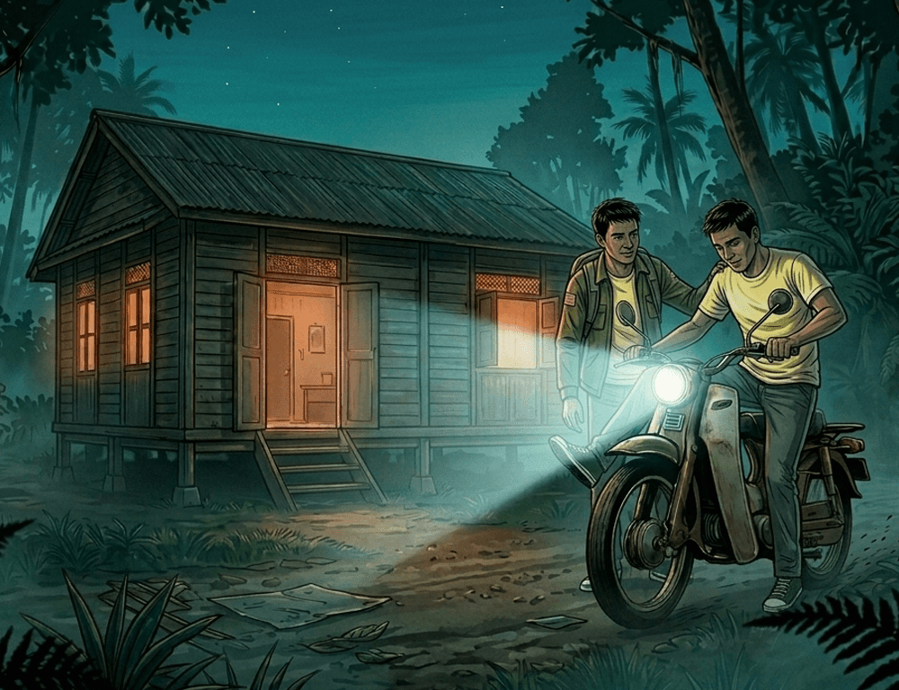 Hampir 10 minit meredah malam, akhirnya mereka sampai juga. Setelah meletakkan motosikal di bangsal berhampiran, terus Pian mempelawa rakannya itu naik ke rumah.