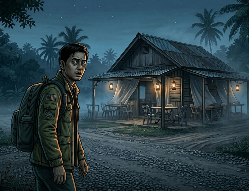 Jamali melangkah perlahan menghampiri warung yang sudah kosong di simpang jalan. Dalam hati dia bersyukur lega kerana masih ada lagi kedai makan yang beroperasi walaupun sudah lewat malam.