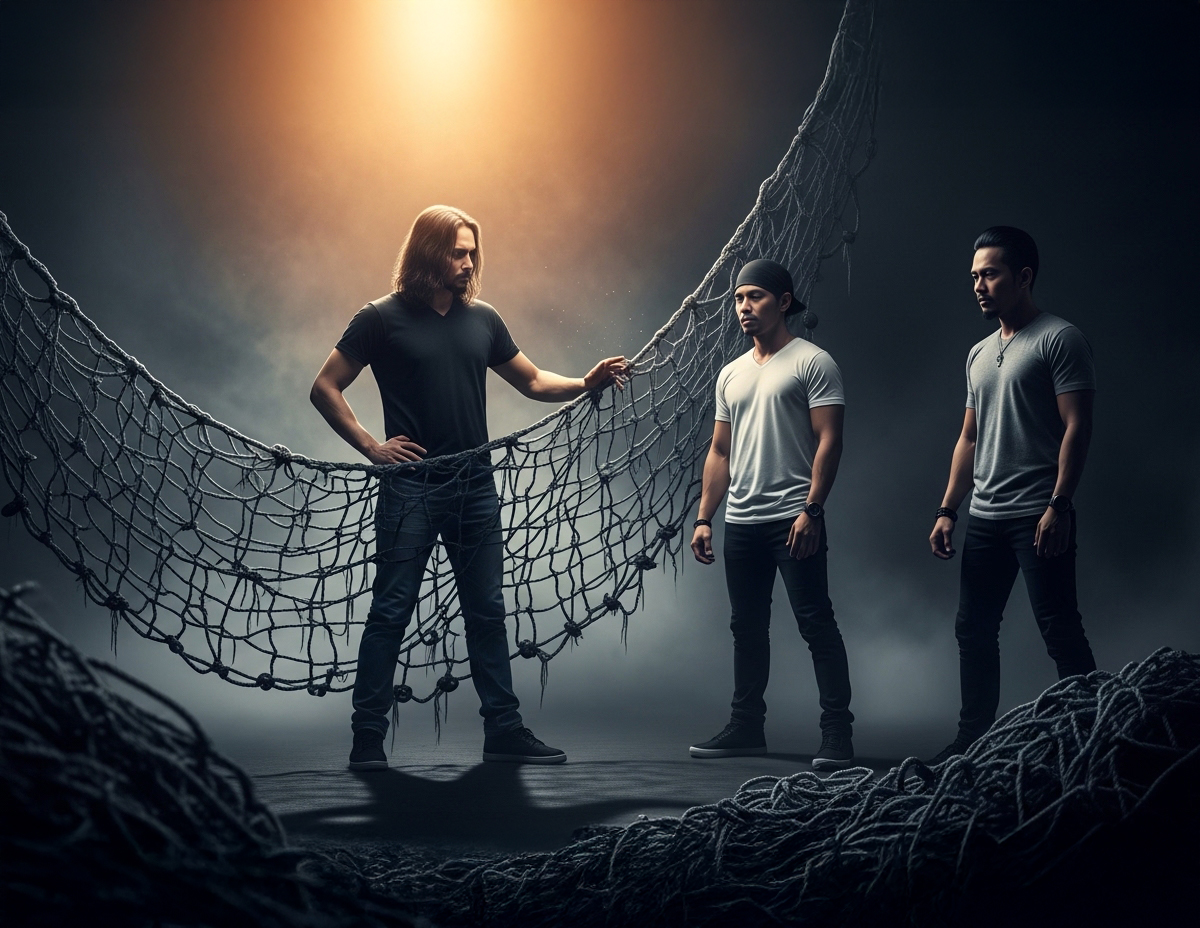 Zaril berdiri bercekak pinggang di hadapan jaring yang terpasang kemas di hadapannya. Sesekali dia menolak-nolak jaring tersebut dengan jari untuk memastikan ia kuat dan kukuh. “Okey, sekarang ini jaring semua sudah siap pasang, sekejap lagi bolehlah kita mula,” kata Zaril memberi arahan.