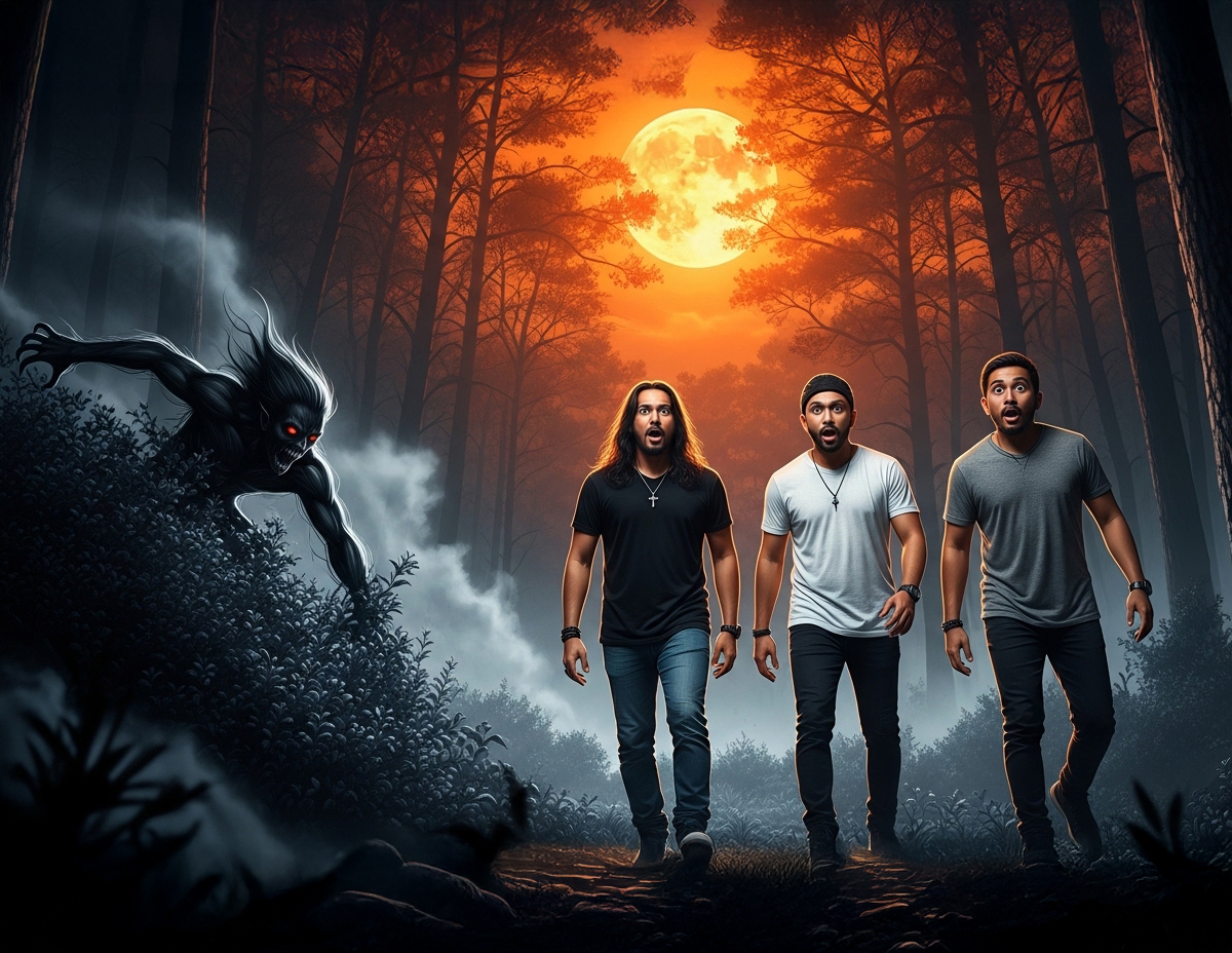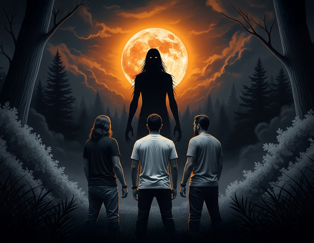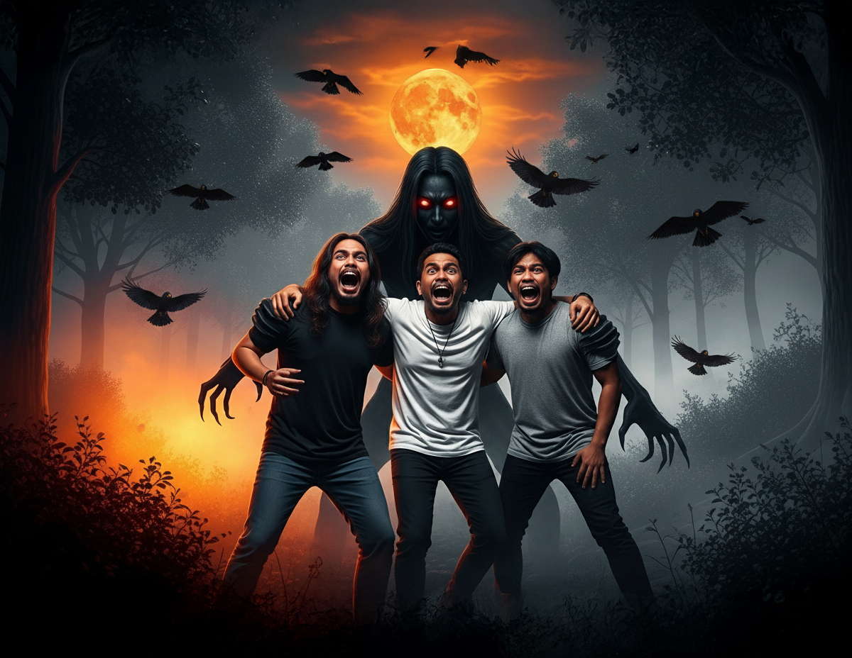 Tidak lama kemudian barulah sosok menakutkan itu beredar semula ke arah hutan di baroh, mereka bertiga lantas keluar dari persembunyian sambil menarik nafas lega.