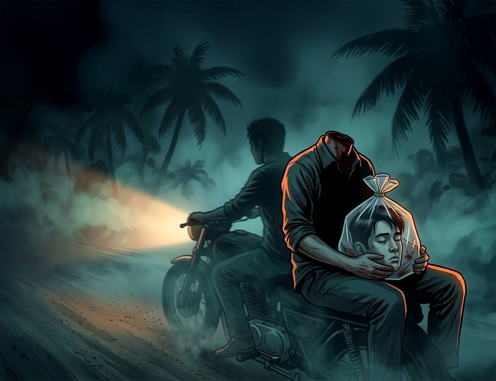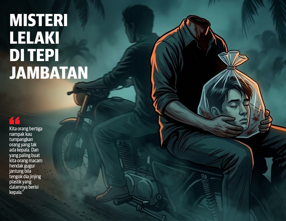 “Kita orang bertiga nampak kau tumpangkan orang yang tak ada kepala. Dan yang paling buat kita orang macam hendak gugur jantung bila tengok dia jinjing plastik yang dalamnya berisi kepala,” sambung Mizi dengan bersungguh.
