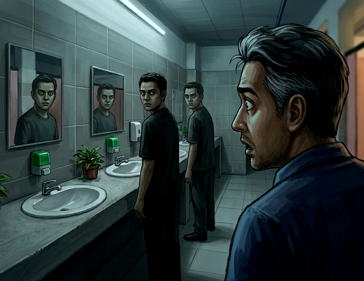 “Kemudian saya terdengar suara seperti orang berbual, jadi saya tidak rasa terlalu sunyi ketika berada di dalam tandas. Sebaik saja keluar dari tandas, saya ada melihat dua lelaki sedang berdiri kaku berhampiran dengan singki. Mereka hanya berdiri dan tidak berbual antara satu sama lain,” katanya.