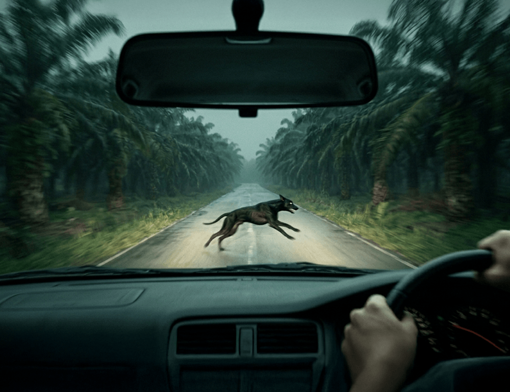 Sedang dia memandu, secara tiba-tiba ada haiwan yang menyerupai seperti anjing berlari ke tangah jalan dan mengakibatkan Kamil terperanjat sehingga hilang kawalan sedikit.