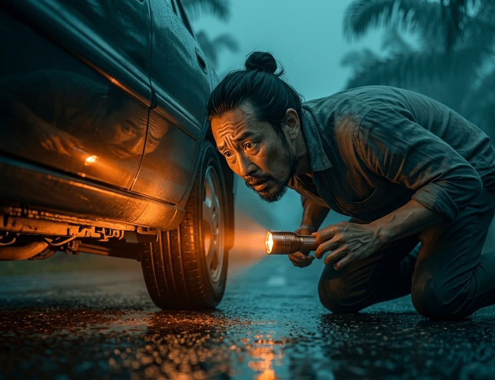 Sedang fokus dengan pemanduan, tiba-tiba Kamil memberhentikan kereta kerana berasa seperti ada melanggar sesuatu.