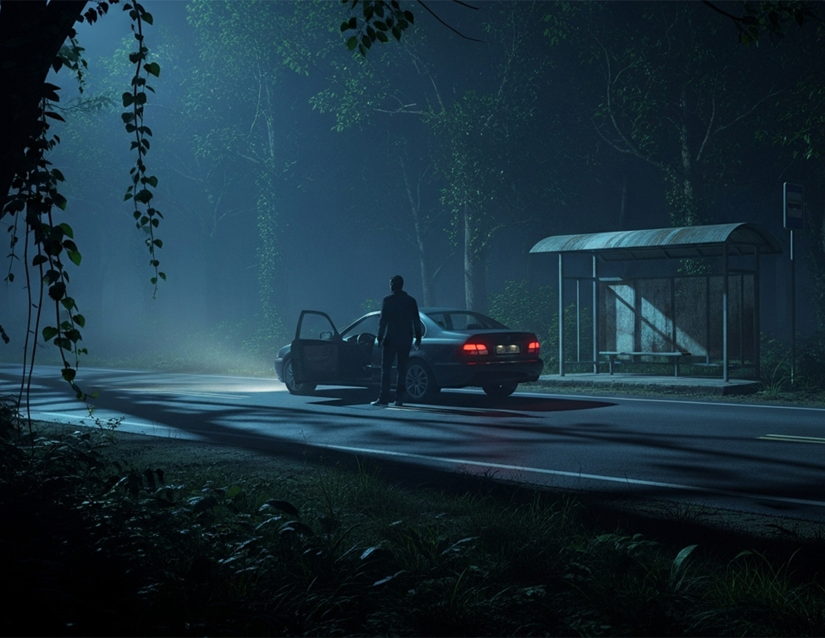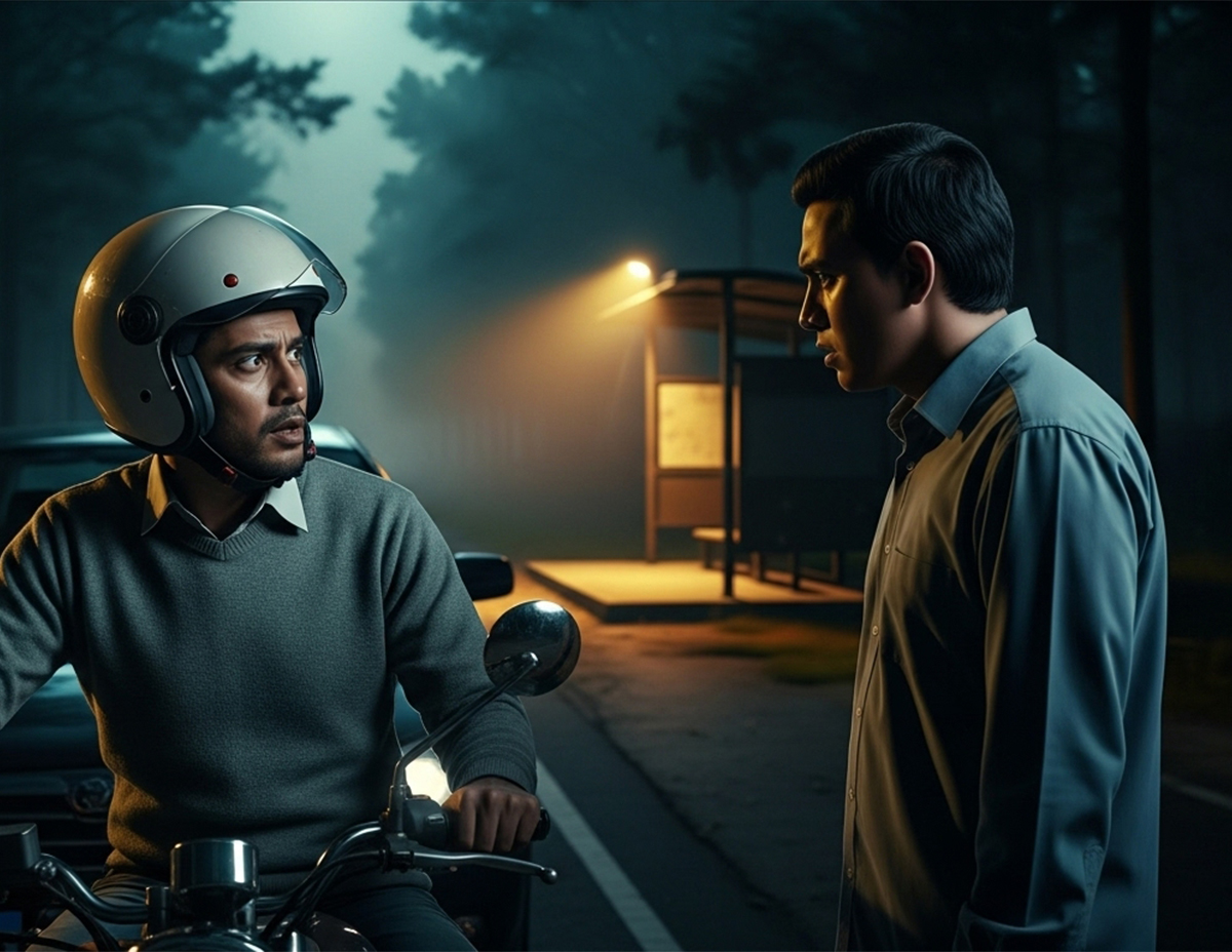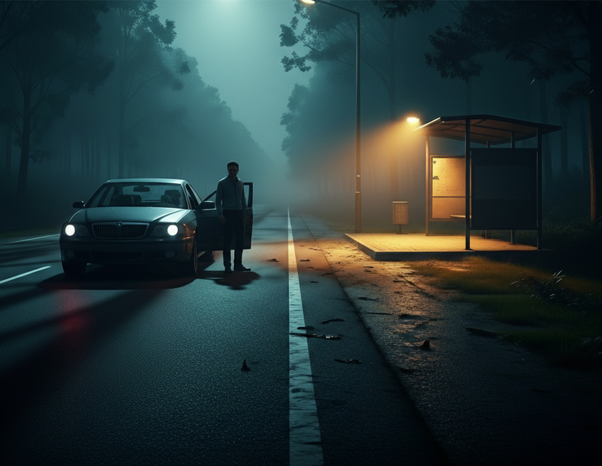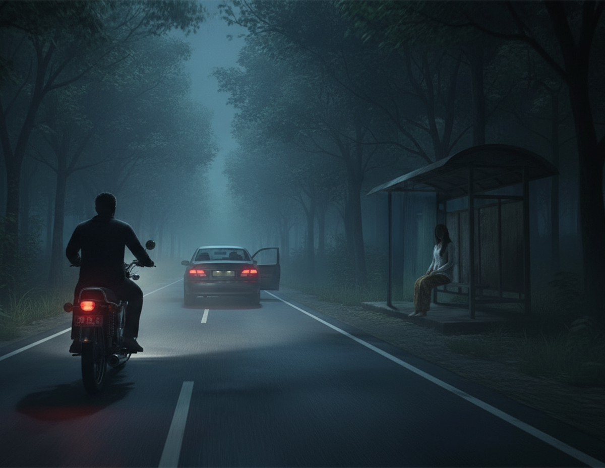 Perasaan bimbang mula menyelubungi minda kerana teringat akan cerita temannya tentang penunggu perhentian bas yang kerap mengganggu pengguna jalan raya terutama tiba waktu tengah malam.