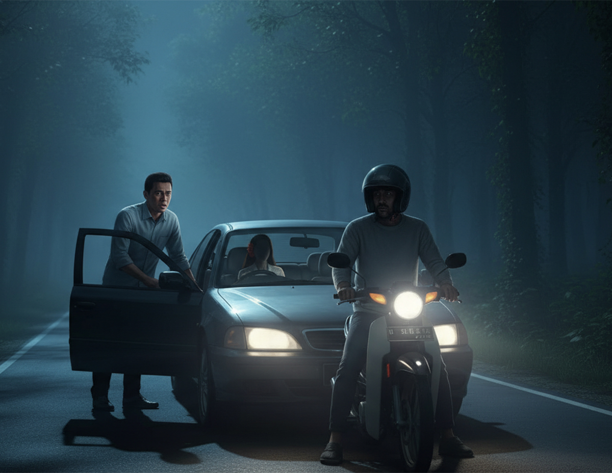Mata Ismail menatap tepat ke arah wanita itu yang tiba-tiba berjalan ke arah tengah jalan raya dan perlahan-lahan hilang dalam kepekatan malam.
