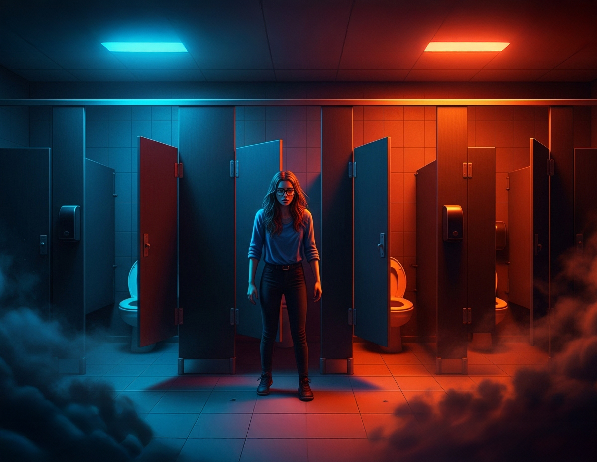 Namun, semasa menggunakannya, dia mendengar ada bunyi tapak kaki memasuki tandas di sebelah dan yang membuatkan dia terkejut pintu tandas dihempas dengan kuat.